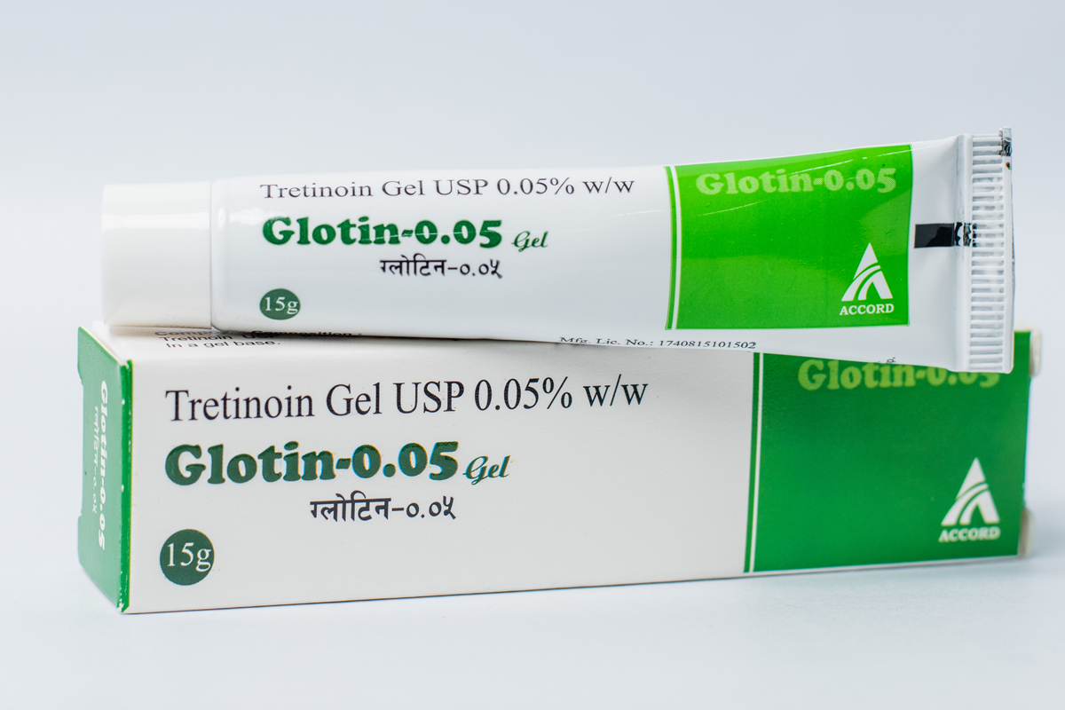 Active ingredient of Glotin gel is Tretinoin which is use to treat acne.